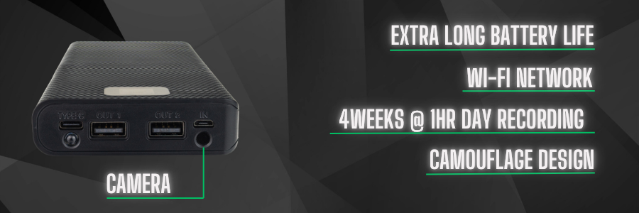 Discreet design hidden camera built into a functional power bank for inconspicuous recording, ensuring privacy and reliability everywhere.